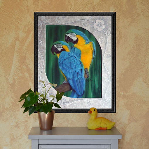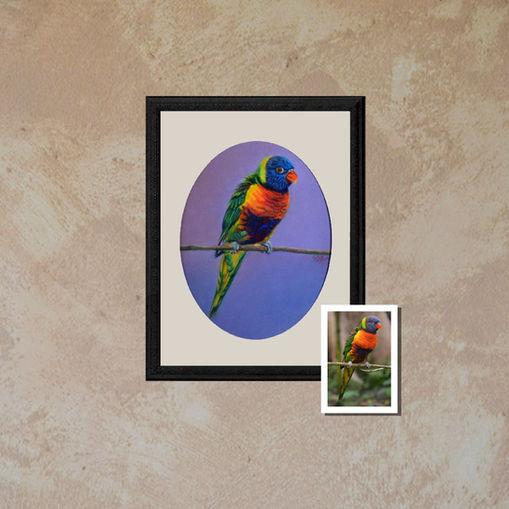 Les tableaux vous sont présentés à l'échelle, dans une scène de 80x80 cm, sauf mention contraire, pour vous donner une idée du rendu selon différentes dimensions, suivie d'une seconde présentation avec la ou les photos de référence.