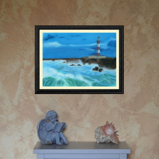 Les tableaux vous sont présentés à l'échelle, dans une scène de 80x80 cm, sauf mention contraire, pour vous donner une idée du rendu selon différentes dimensions, suivie d'une seconde présentation avec la ou les photos de référence.