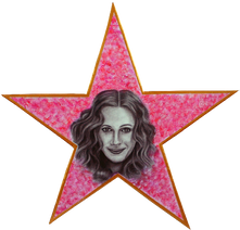 Réalisés dans le cadre d'un comice agricole pour le décor d'une rue dont le thème était le cinéma américain, ces dessins au fusain de différentes star américaines ont été vernis et collés sur un support en bois, découpé en forme d'étoile par d'autres bénévoles. Afin de rappeler les étoiles d'Hollywood Boulevard, le fond des dessins ont été peints en rose, avec des peintures acryliques en utilisant une petite éponge, et une bande de peinture dorée a été réalisée sur tout le contour de l'étoile.